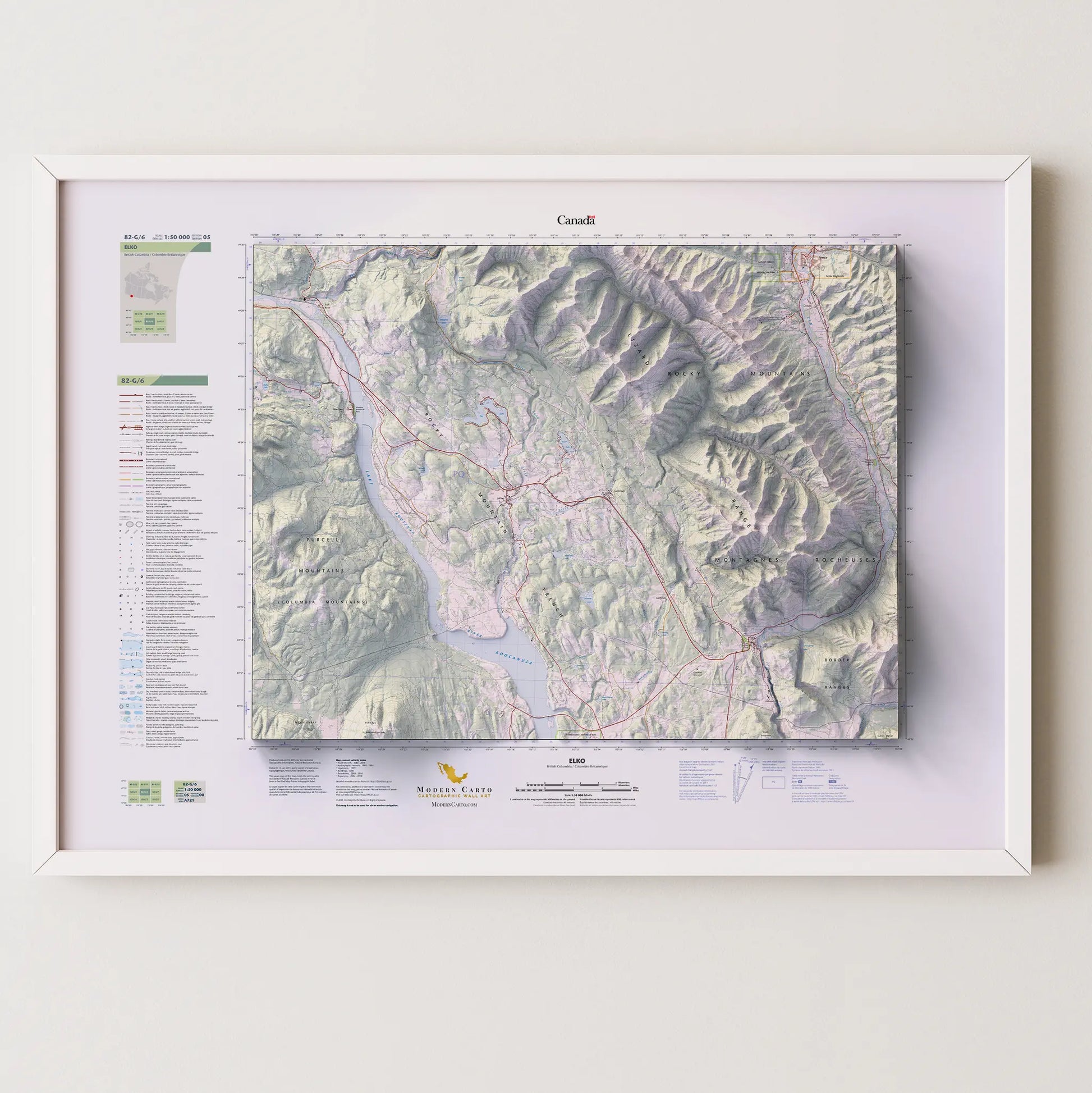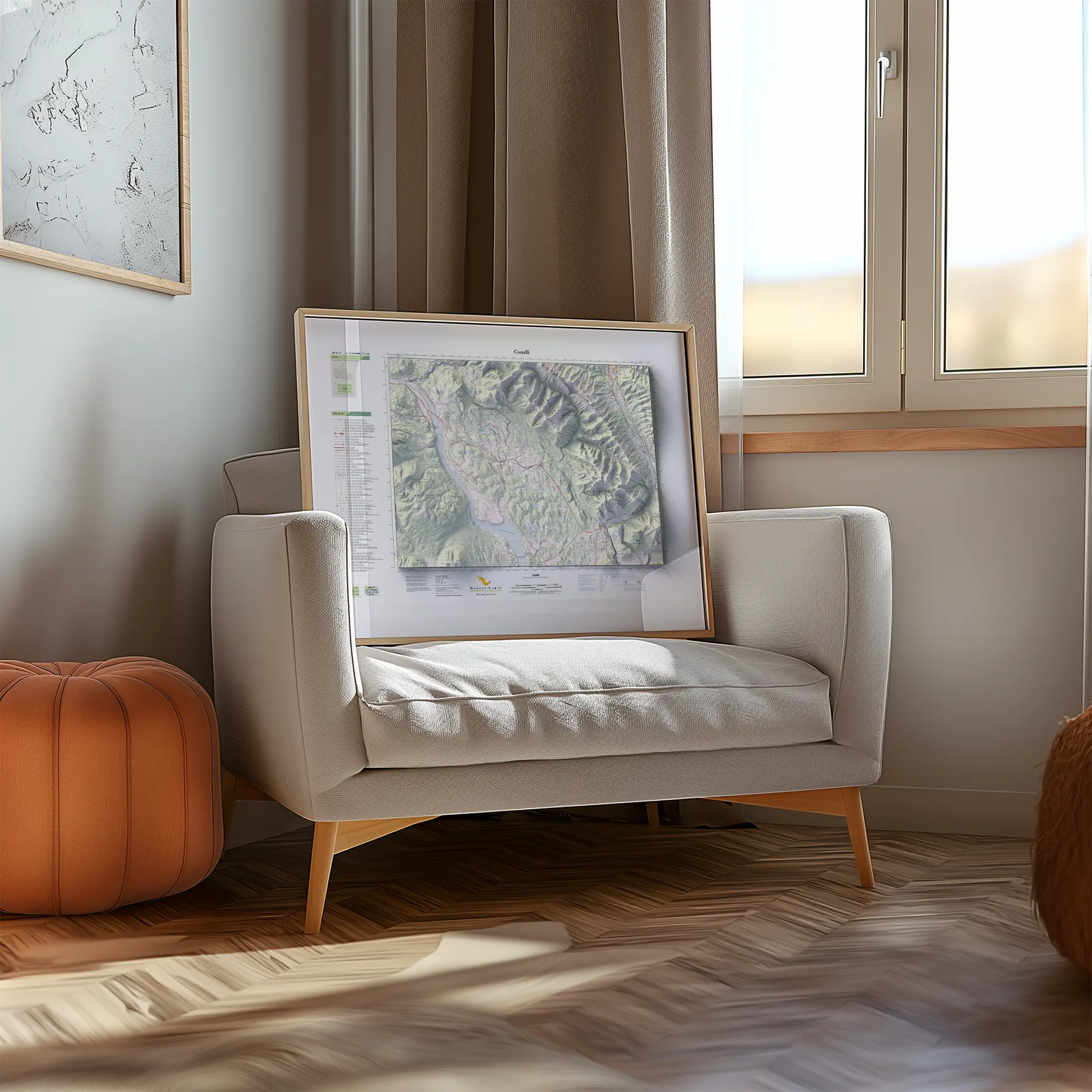3D rendered shaded relief using real-world elevation data creates a realistic 3D appearance on a 2D wall art surface, accurately portraying the landscape's elevation, topography, lighting and shadows. Our meticulously crafted cartographic wall art is a beautiful and unique addition to any room.
