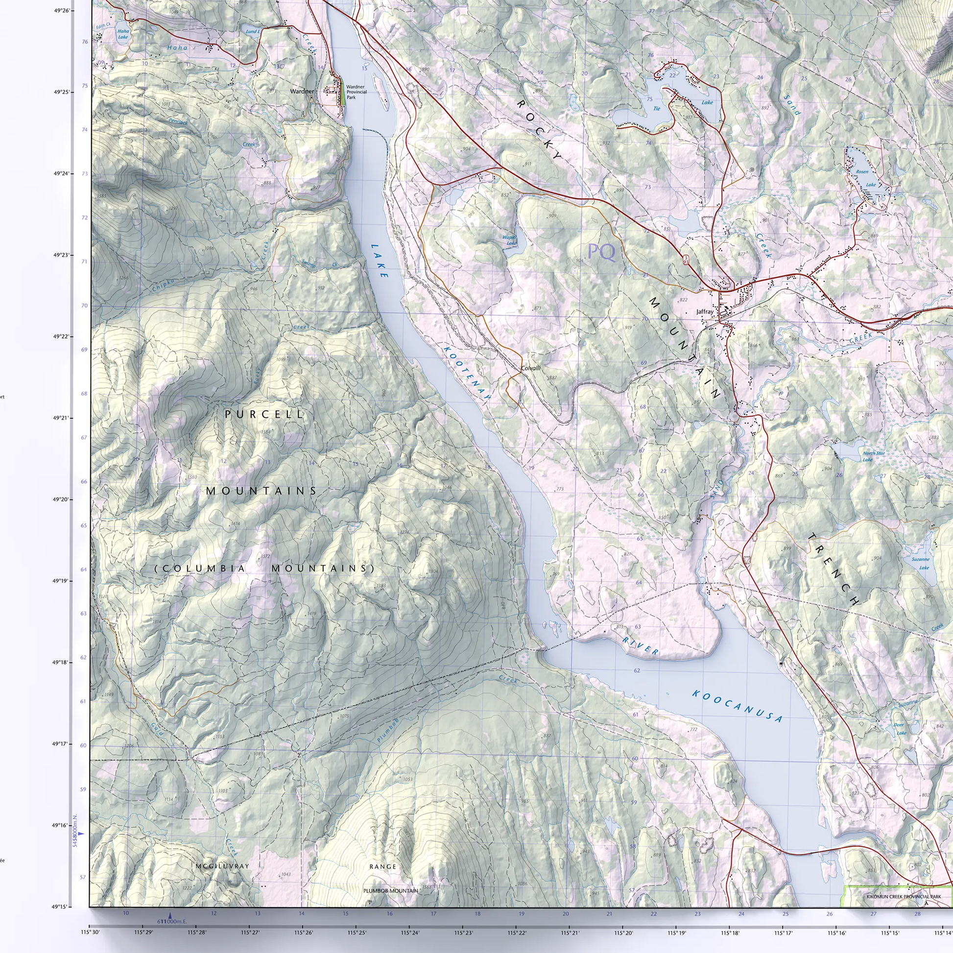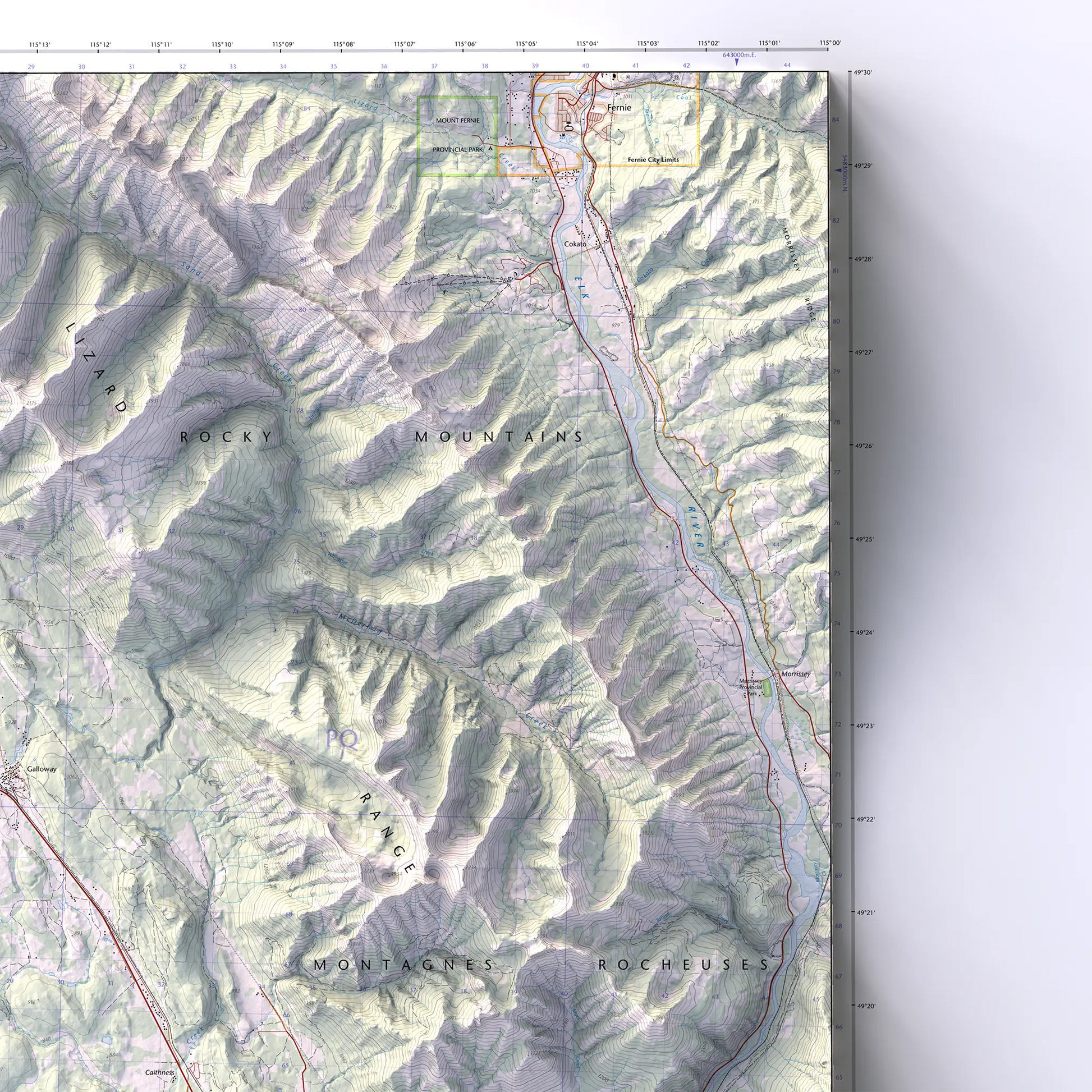 - Enhanced with 3D rendered shaded relief using real-world elevation data, creating realistic lighting & shadows