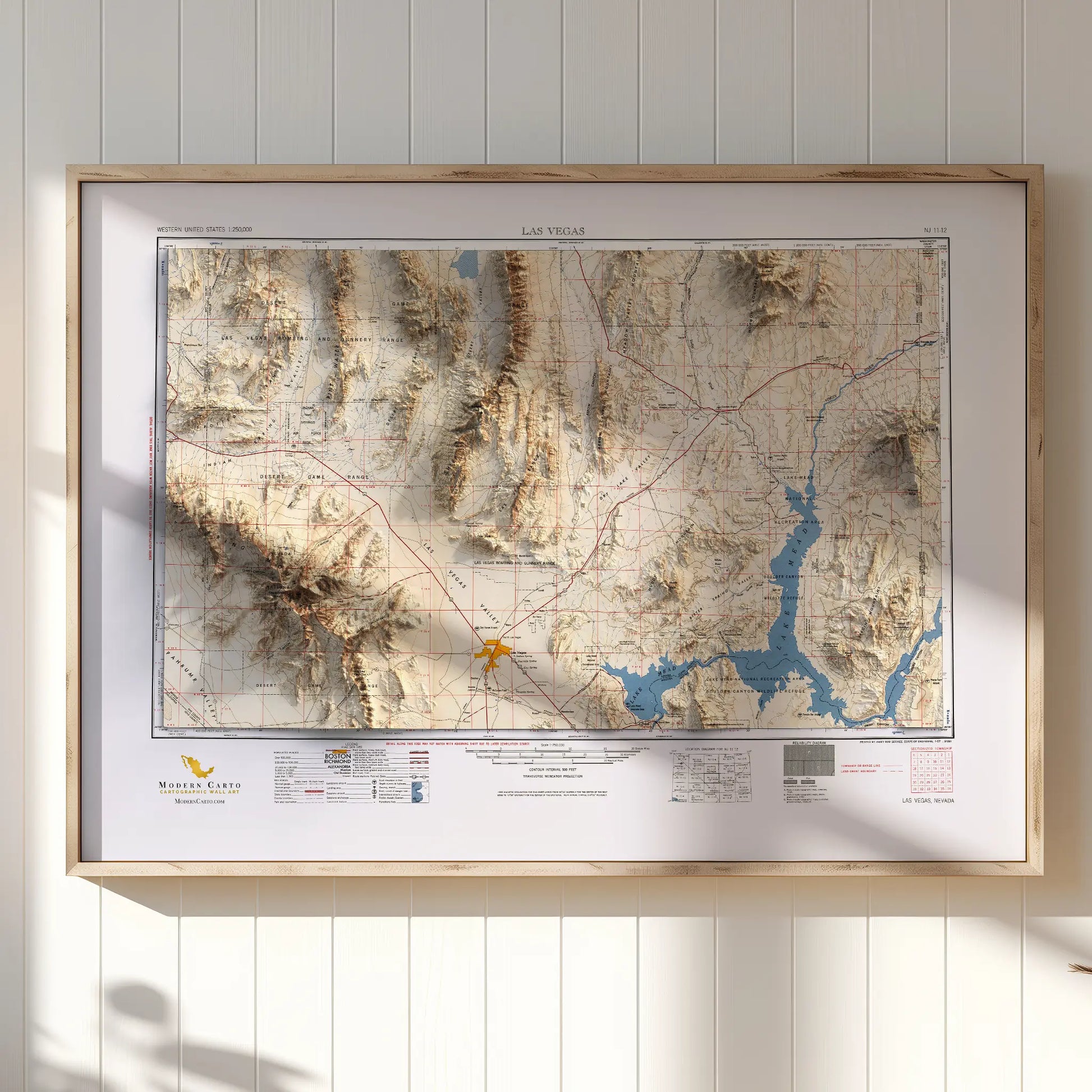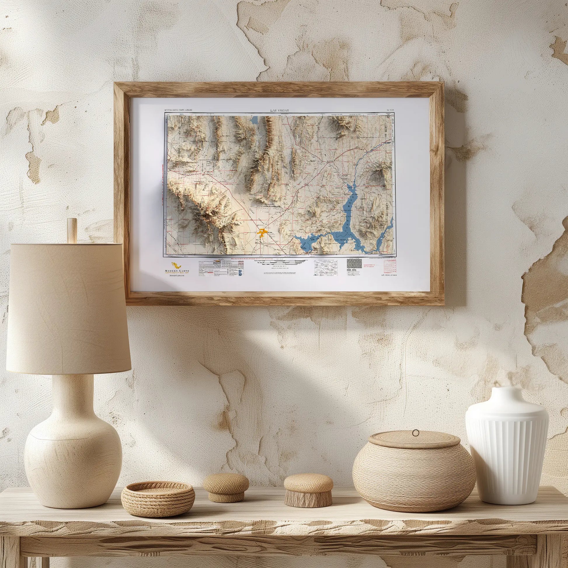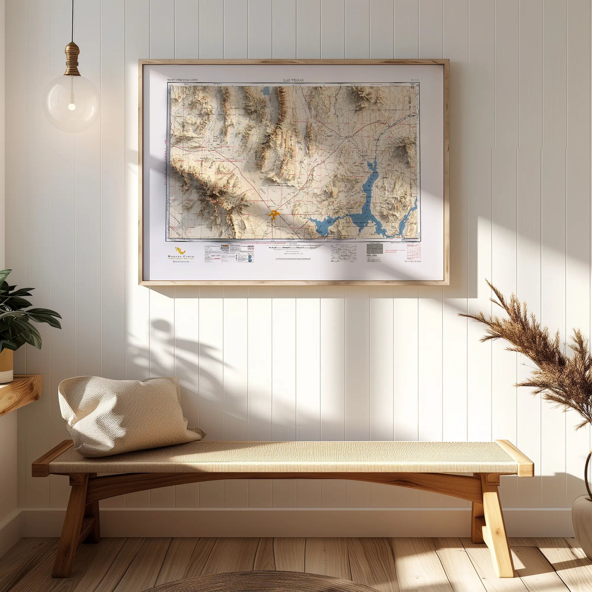 3D rendered shaded relief using real-world elevation data creates a realistic 3D appearance on a 2D wall art surface, accurately portraying the landscape's elevation, topography, lighting and shadows. Our meticulously crafted cartographic wall art is a beautiful and unique addition to any room.