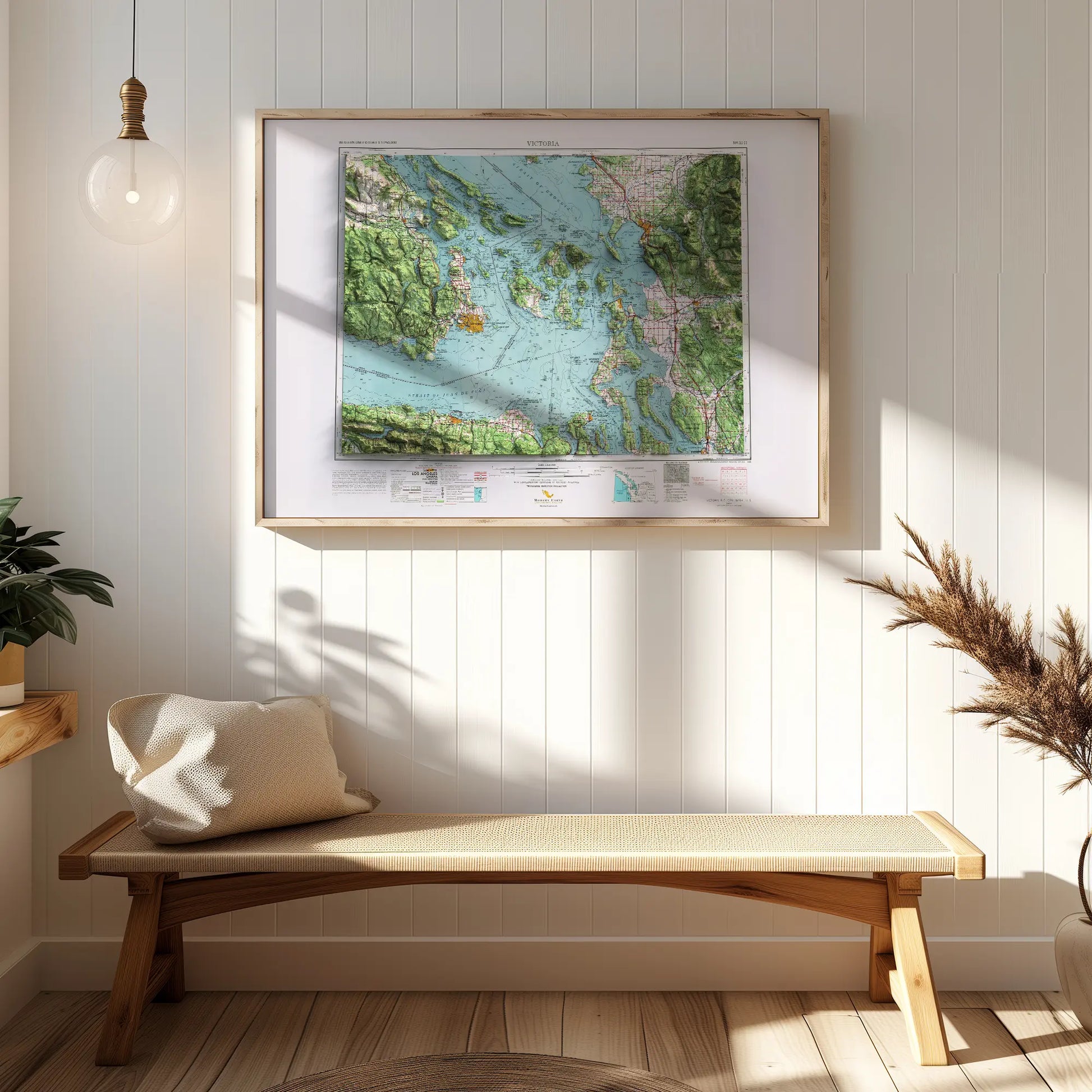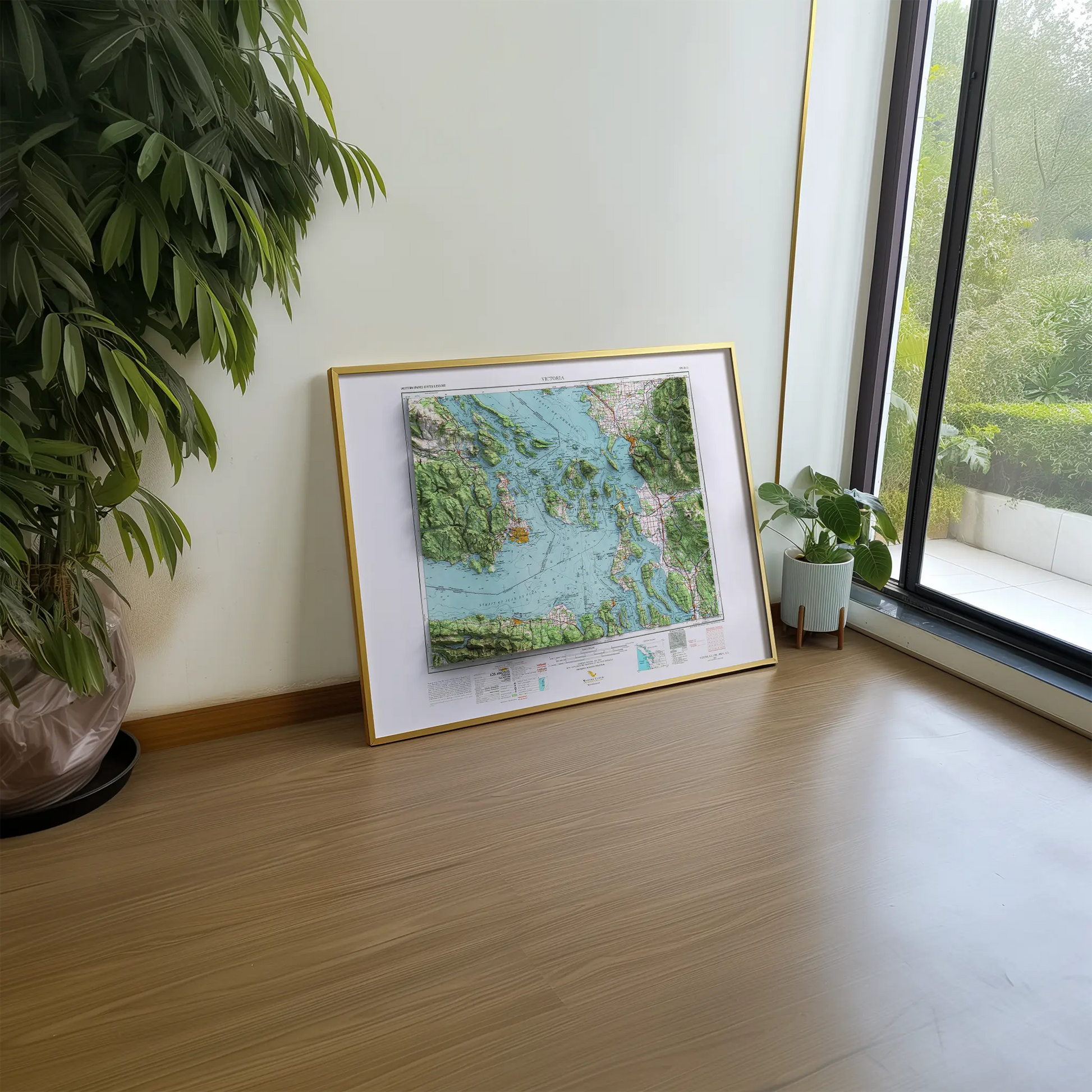 3D rendered shaded relief using real-world elevation data creates a realistic 3D appearance on a 2D wall art surface, accurately portraying the landscape's elevation, topography, lighting and shadows. Our meticulously crafted cartographic wall art is a beautiful and unique addition to any room.