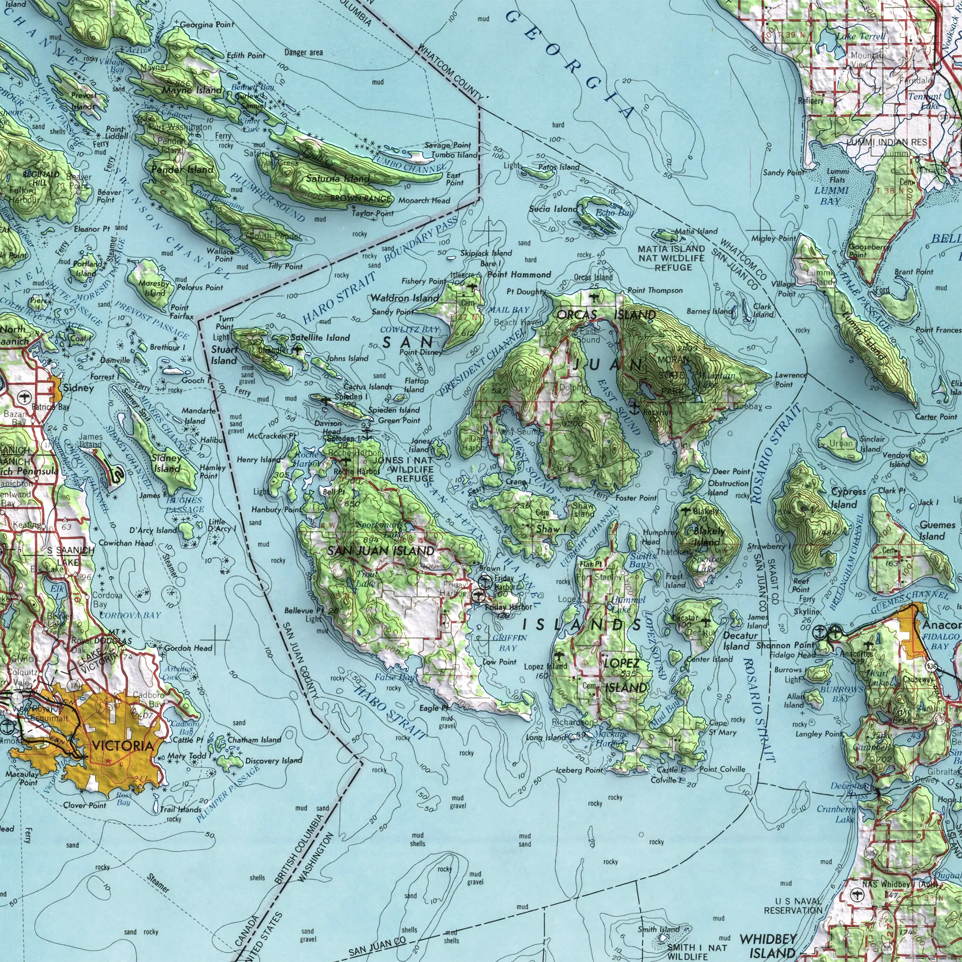 - Enhanced with 3D rendered shaded relief using real-world elevation data, creating realistic lighting & shadows